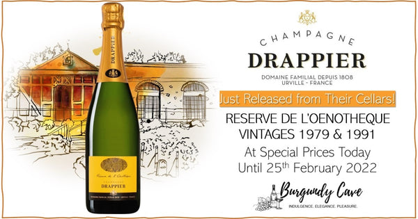 Today we are pleased to offer their Reserve de L'Oenotheque Brut from 1979 and 1991 vintages which were late disgorged, and just released from Drappier cellar last month (January 2022). The Reserve de L'Oenotheque is a cuvee that comes from the house's famous label Carte d’Or, a Pinot Noir-dominated champagne which is built for structure and complexity. Offered at special prices today until 25th February 2022, do not miss this opportunity to grab a few bottles now! Arrives in 2 weeks -